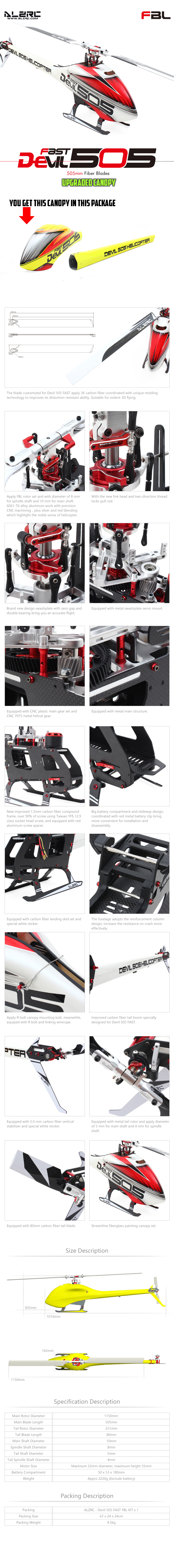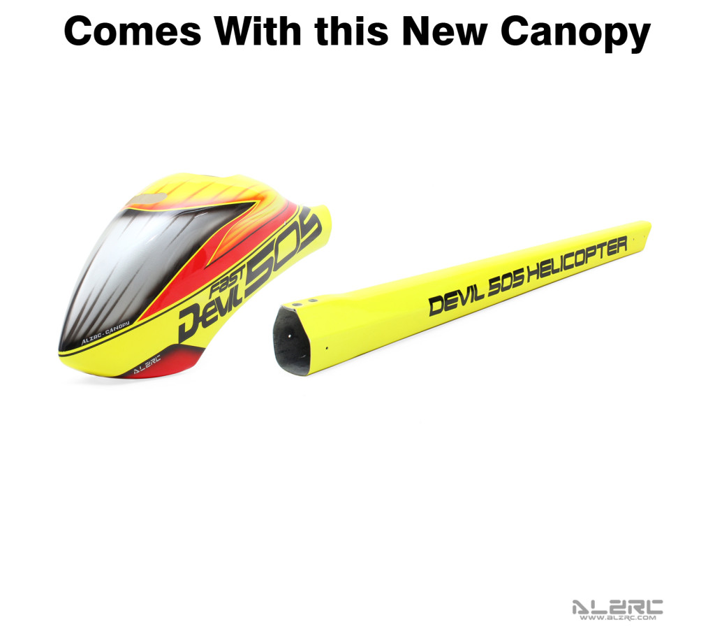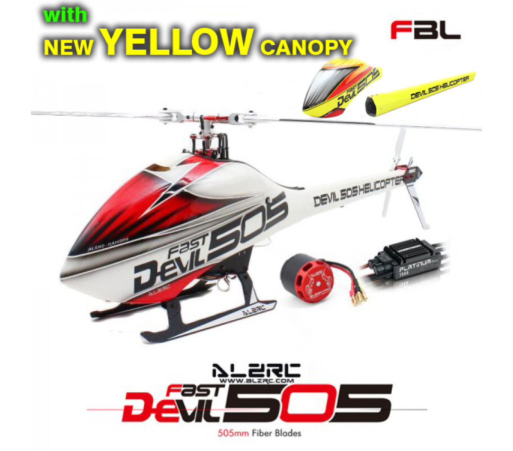 ALZRC - Devil 505 FAST FBL COMBO Motor dan ESC - Silver-New Yellow Canopy QQ