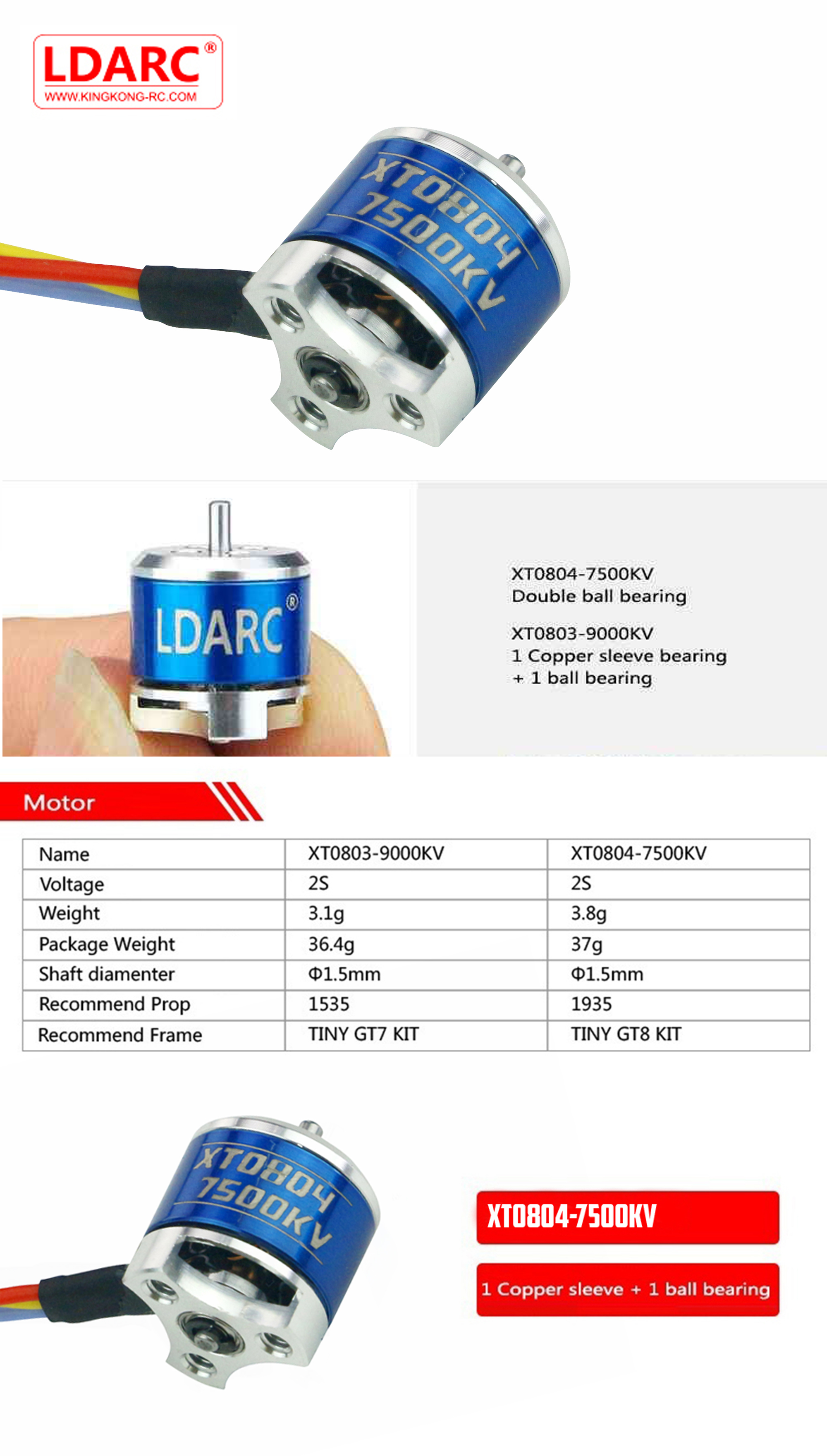LDARC Brushless Motor for Tiny Multirotor XT0804-7500KV