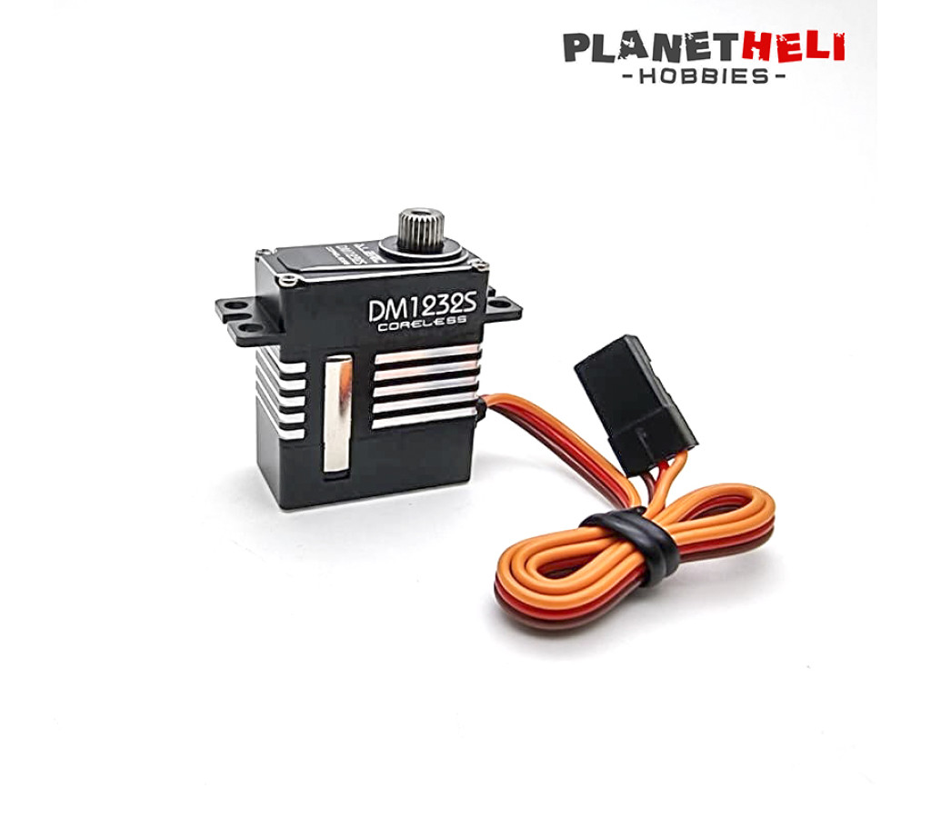 DM1232S a special micro digital metal servo customized for the swashplate, with application of steel cog which will greatly reduce brush and break for the teeth. New generation control chip presents pure stability and high efficiency. New metal shell with CNC highlights surface emerge high-quality and luxury.