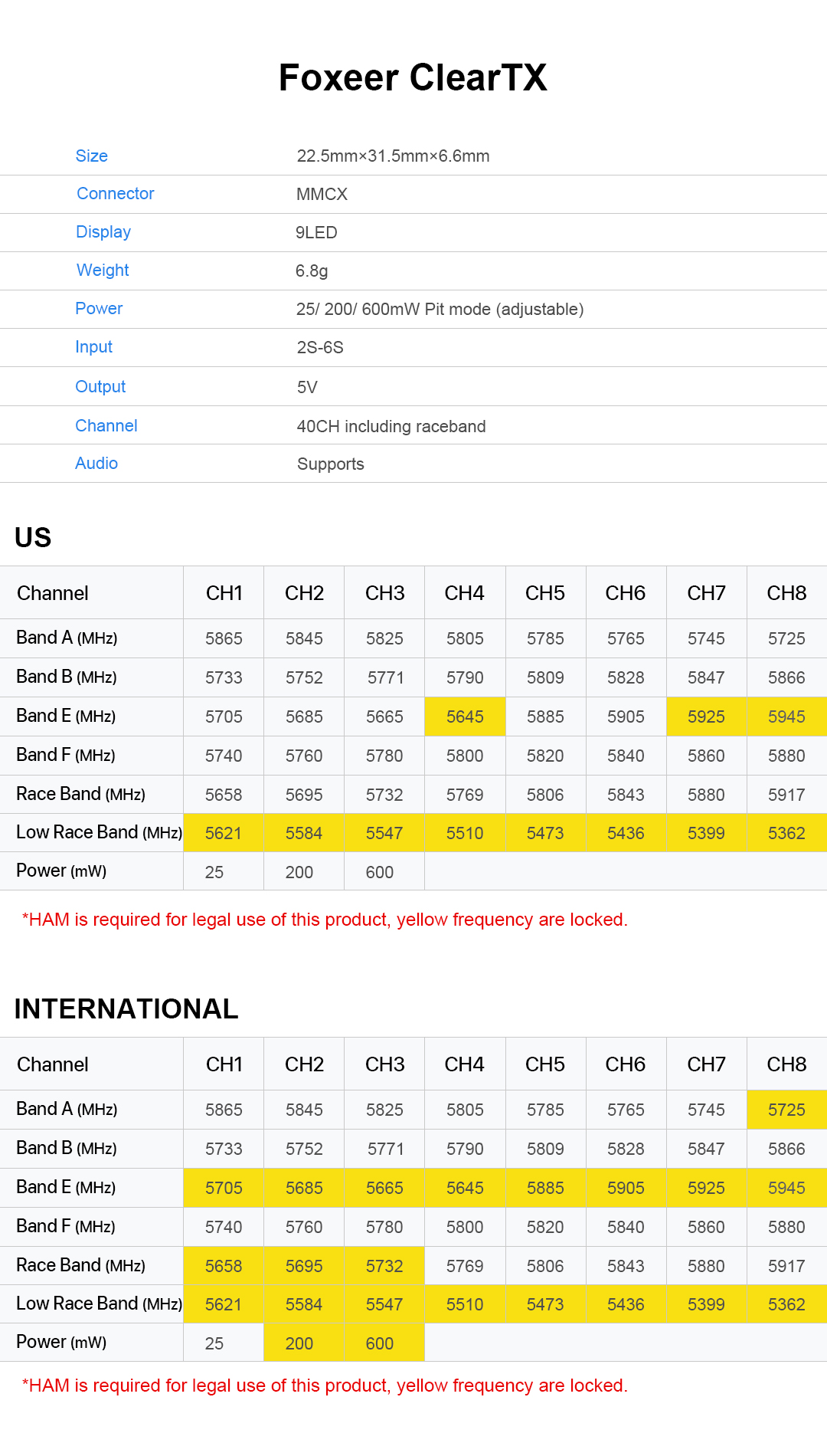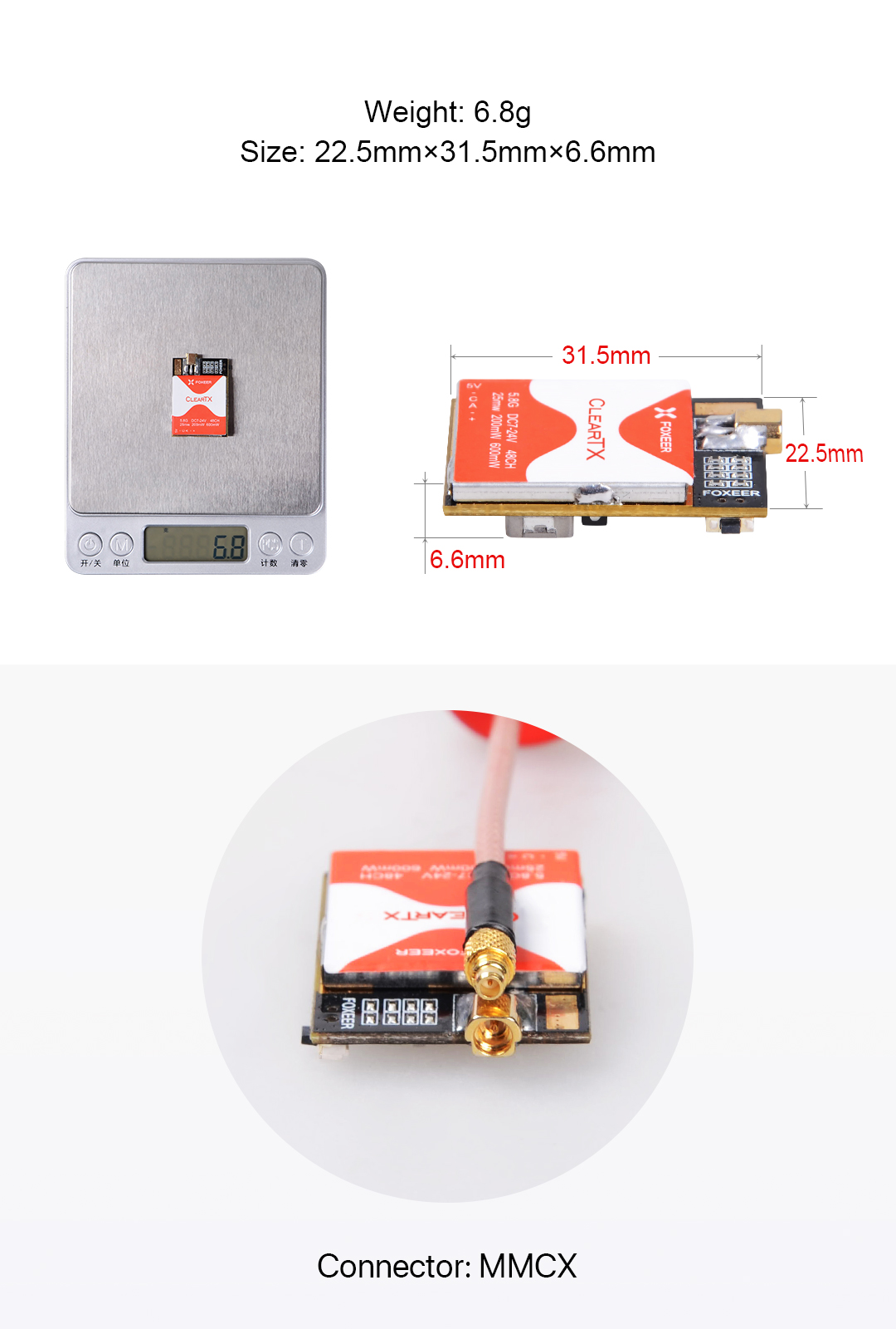 1 x Foxeer ClearTX 5.8G 48CH (without Antenna)
