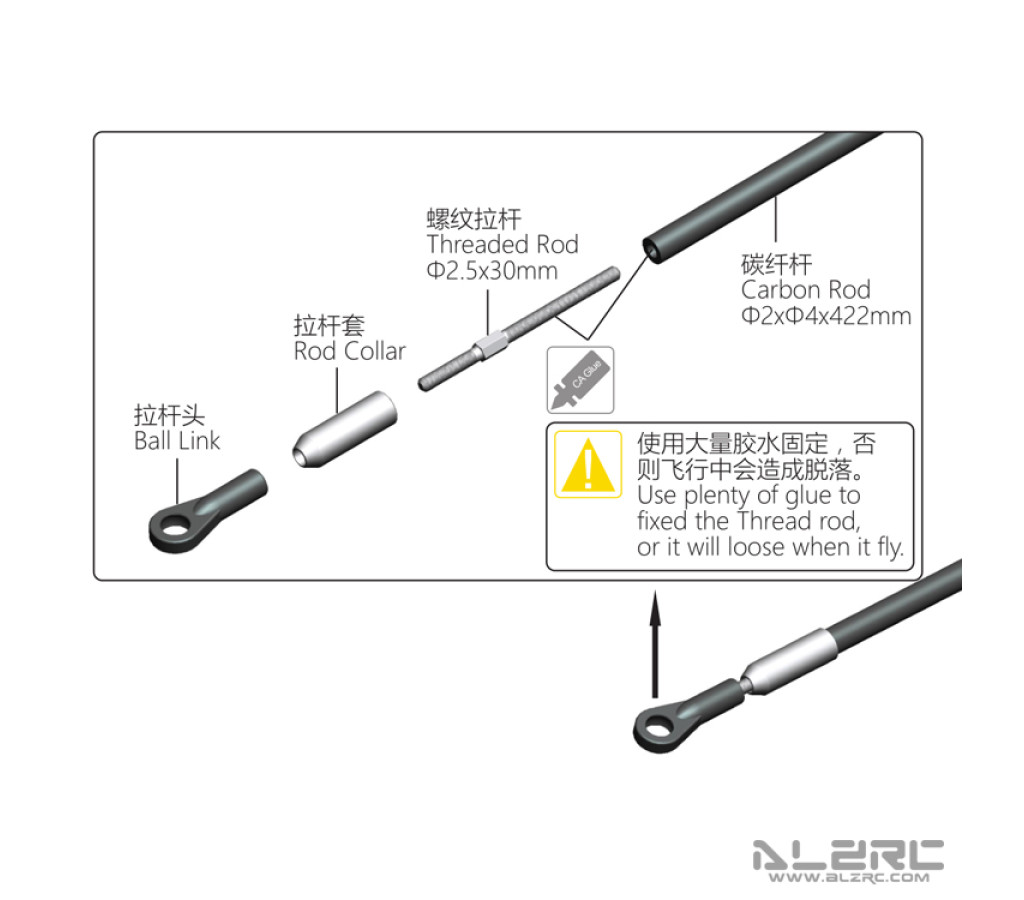 ALZRC - Devil 420 FAST Carbon Fiber Tail Control Rod Assembly